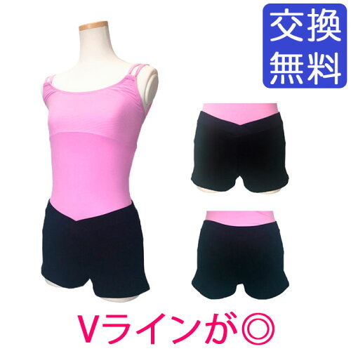 コットンストレッチVラインバレエショートパンツ HS102 韓国製 (大人 ジュニア キッズ子供用)ウォームアップ ウエア/スパッツ/ボトムス 黒ブラック